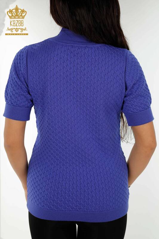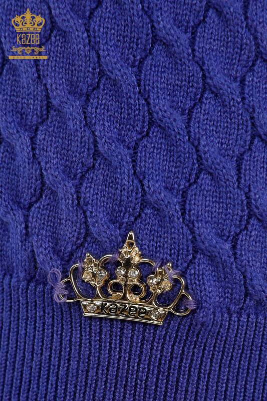 Wholesale Women's Knitwear Sweater American Model Basic Logo Violet - 30119 | KAZEE