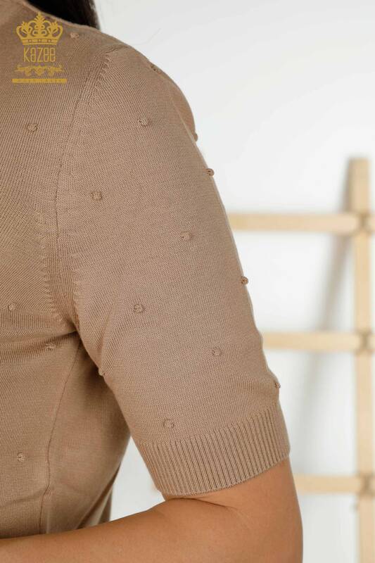 Wholesale Women's Knitwear Sweater American Model Stand Beige - 30131 | KAZEE