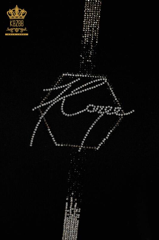 Wholesale Women's Knitwear Sweater American Model Stone Embroidered Black - 16639 | KAZEE