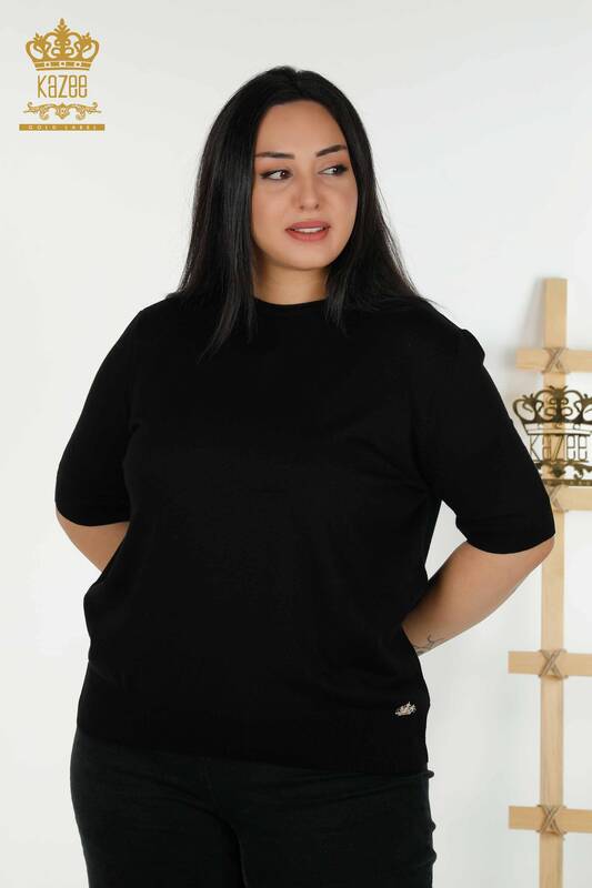 Wholesale Women's Knitwear Sweater American Model Basic Black with Logo - 30443 | KAZEE