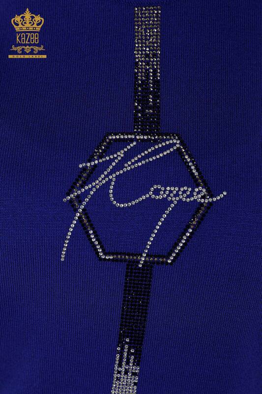Wholesale Women's Knitwear Sweater American Model Stone Embroidered Dark Blue - 16639 | KAZEE
