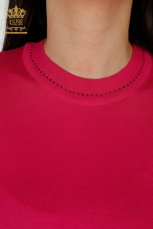 Wholesale Women's Knitwear Sweater American Model Basic Logo Fuchsia - 30255 | KAZEE