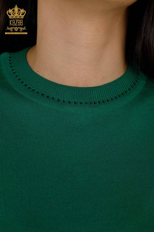 Wholesale Women's Knitwear Sweater American Model Basic Logo Green - 30255 | KAZEE