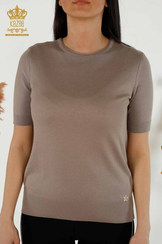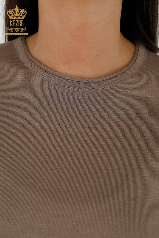 Wholesale Women's Knitwear Sweater American Model Basic Logo Mink - 15943 | KAZEE