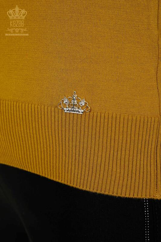 Wholesale Women's Knitwear Sweater American Model Basic Logo Mustard - 30255 | KAZEE