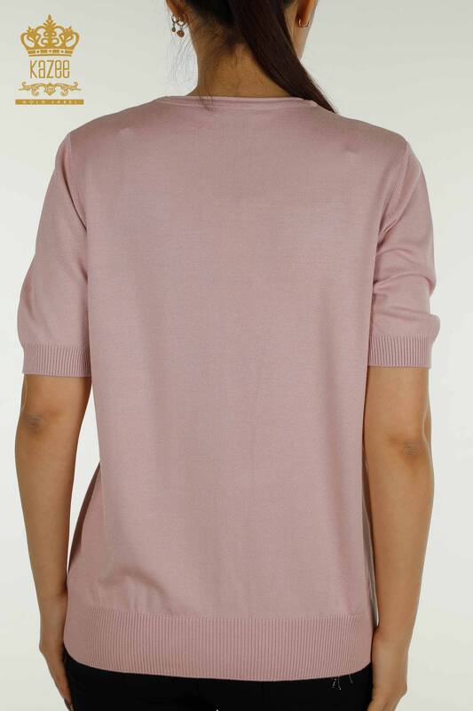 Wholesale Women's Knitwear Sweater American Model Basic Logo Powder - 15943 | KAZEE