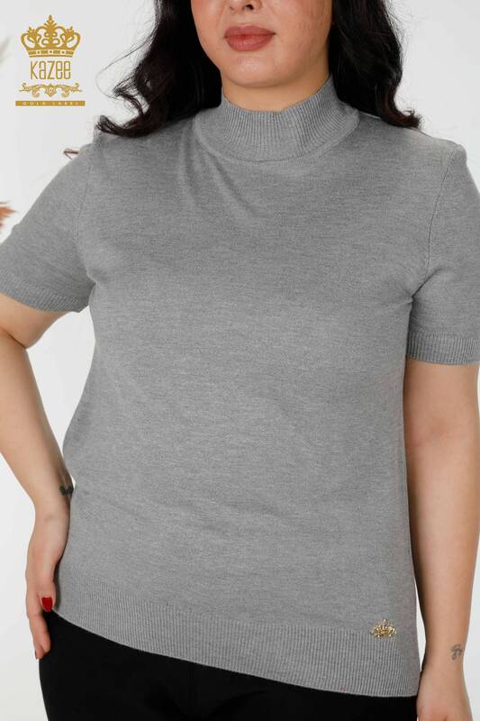 Wholesale Women's Knitwear Sweater American Model Basic Logo Gray - 14541 | KAZEE