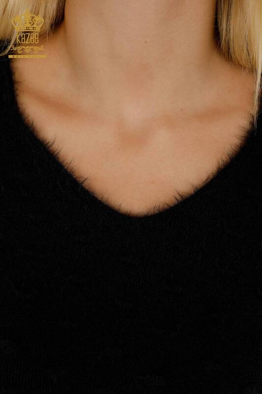 Wholesale Women's Knitwear Sweater Angora Patterned Crew Neck Black - 18474 | KAZEE