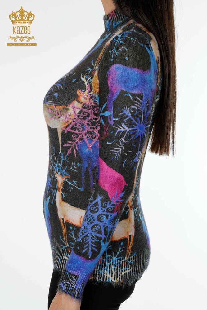 Wholesale Women's Knitwear Sweater Digital Print Angora Stone Embroidered Pattern - 18969 | KAZEE