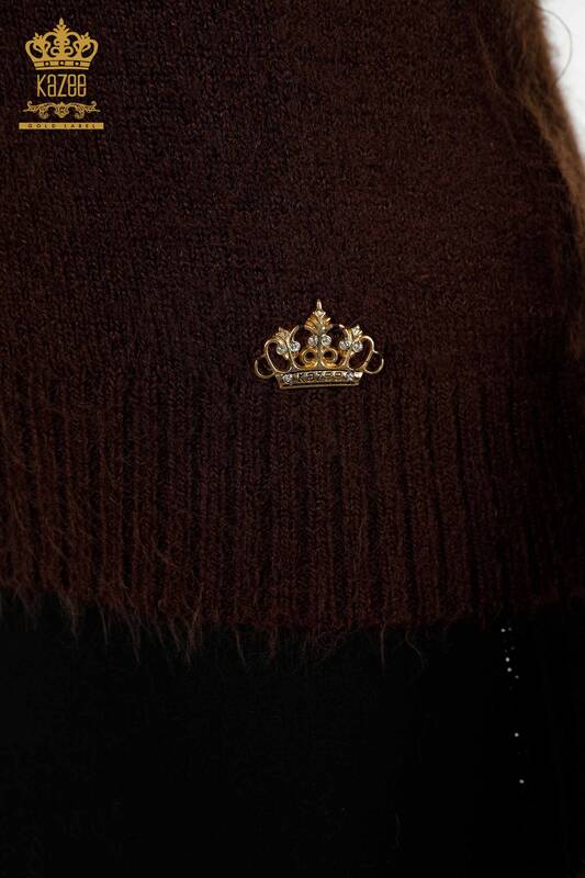 Wholesale Women's Knitwear Sweater Angora V Neck Basic Brown - 12047 | KAZEE