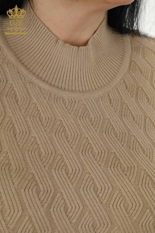 Wholesale Women's Knitwear Sweater Hair Braided American Model Beige - 16181 | KAZEE