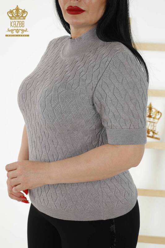 Wholesale Women's Knitwear Sweater Hair Braided American Model Gray - 16181 | KAZEE