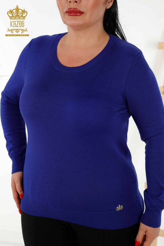 Wholesale Women's Knitwear Sweater Basic Logo Crew Neck Saks - 30213 | KAZEE