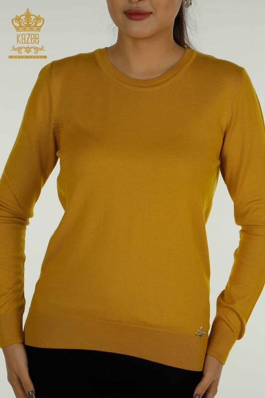 Wholesale Women's Knitwear Sweater Basic Logo Crew Neck Saffron - 11052 | KAZEE