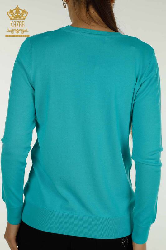 Wholesale Women's Knitwear Sweater Basic Logo Crew Neck Turquoise - 11052 | KAZEE