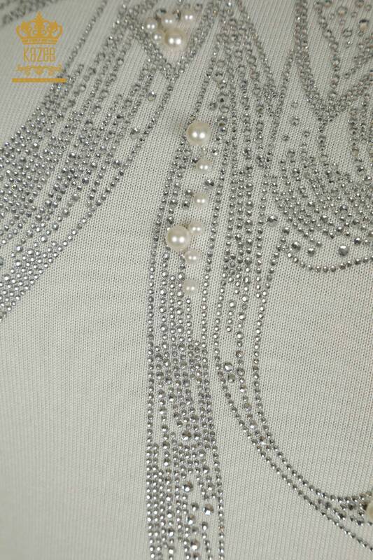 Wholesale Women's Knitwear Sweater Beaded Stone Embroidered Stand Collar Ecru - 30672 | KAZEE