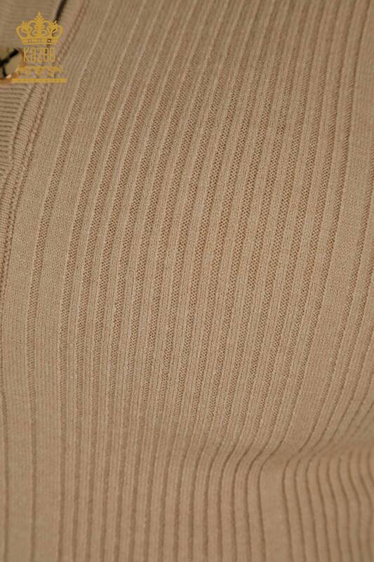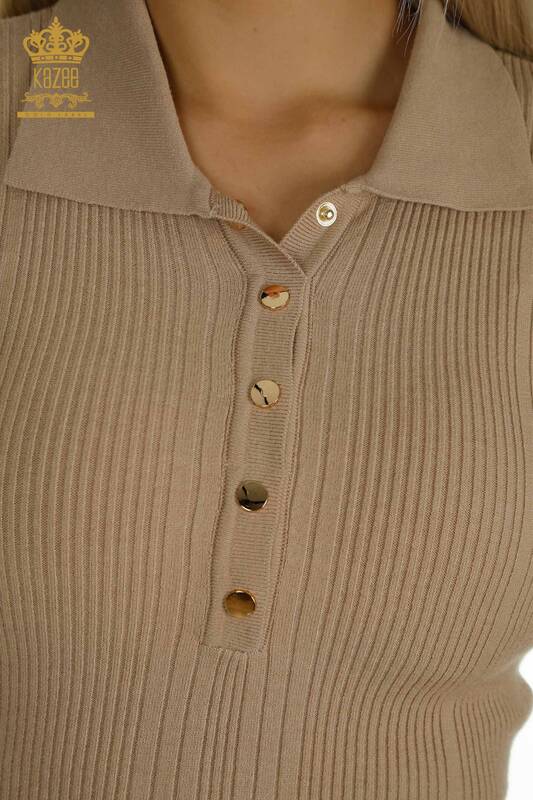 Wholesale Women's Knitwear Sweater Button Detailed Long Sleeve Basic Beige - 30364 | KAZEE