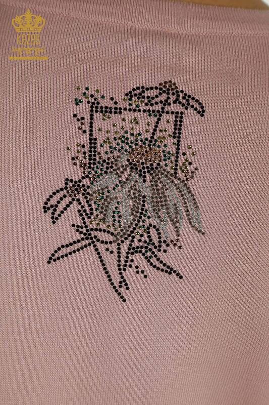Wholesale Women's Knitwear Sweater Flower Embroidered Stone Embroidered Powder - 30612 | KAZEE