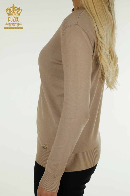 Wholesale Women's Knitwear Sweater High Collar Basic Logo Beige - 30613 | KAZEE