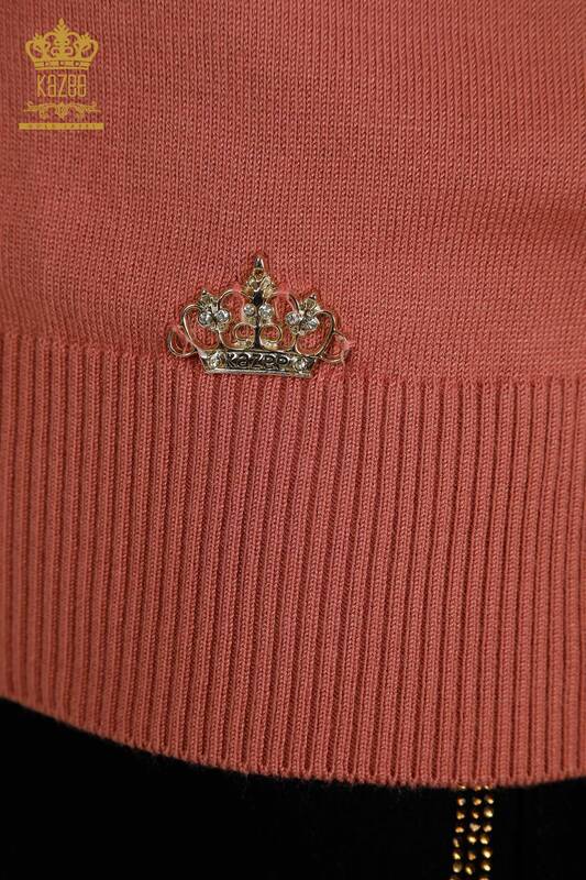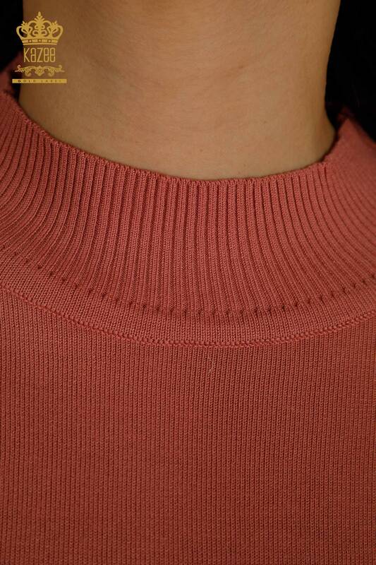 Wholesale Women's Knitwear Sweater High Collar Basic Logo Dusty Rose - 30613 | KAZEE