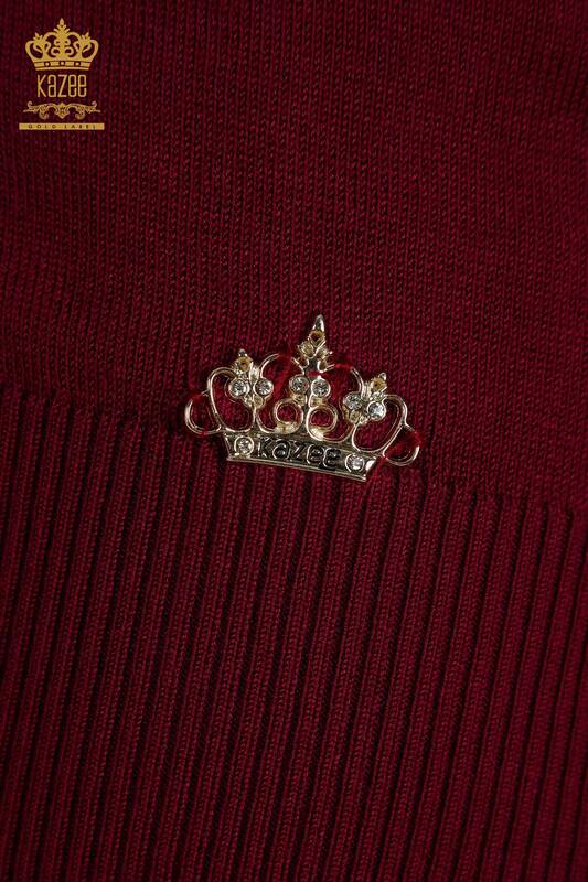 Wholesale Women's Knitwear Sweater High Collar Basic with Logo Purple - 30613 | KAZEE