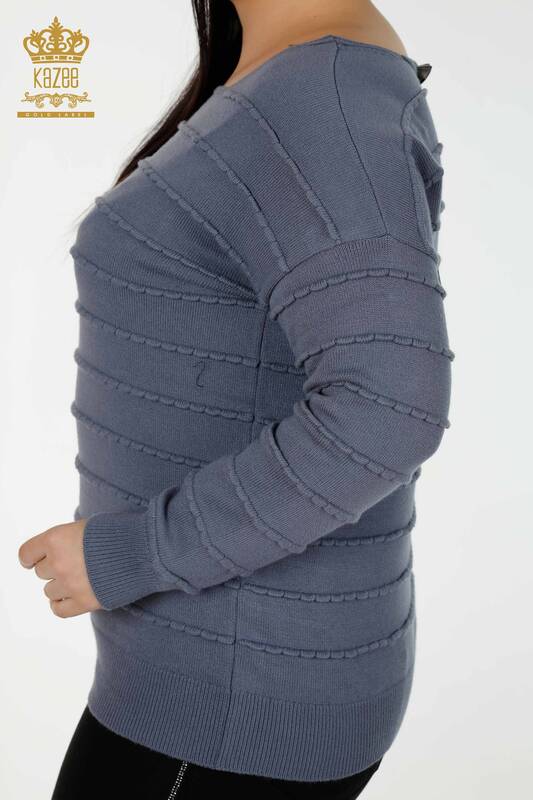 Wholesale Women's Knitwear Sweater Self Woven Crew Neck Indigo - 30169 | KAZEE