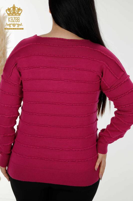 Wholesale Women's Knitwear Sweater Self Woven Crew Neck Purple - 30169 | KAZEE
