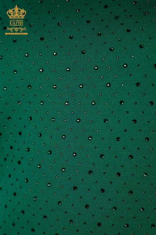 Wholesale Women's Knitwear Sweater Short Sleeve Stone Embroidered Green - 16950 | KAZEE