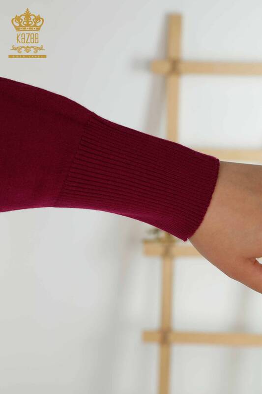 Wholesale Women's Knitwear Sweater Stone Embroidered Shoulder Flower Detailed Purple - 16133 | KAZEE