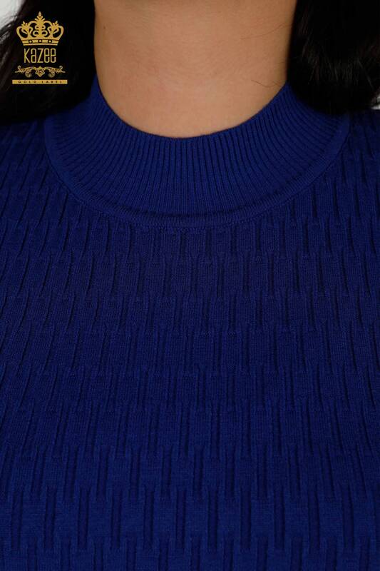 Wholesale Women's Knitwear Sweater Straight Collar Self Woven Saks - 30338 | KAZEE