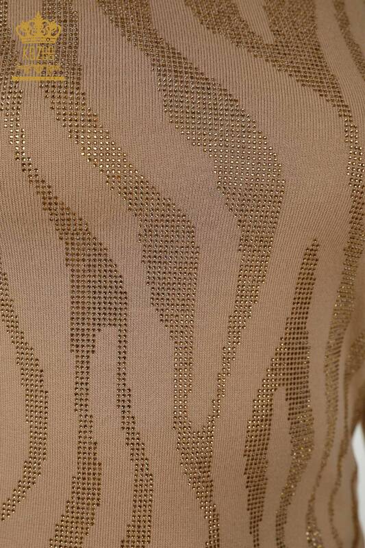 Wholesale Women's Knitwear Sweater Stone Embroidered Long Sleeve Beige - 16728| KAZEE