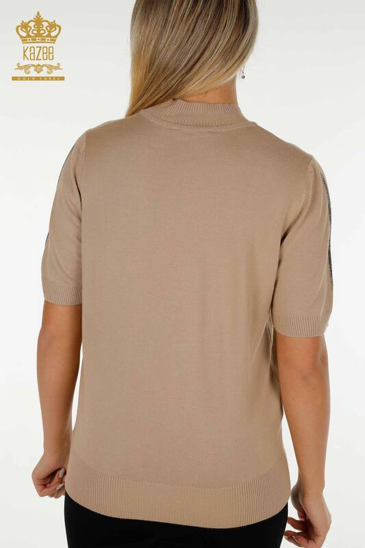 Wholesale Women's Knitwear Sweater Stone Embroidered Short Sleeve Beige - 30491 | KAZEE