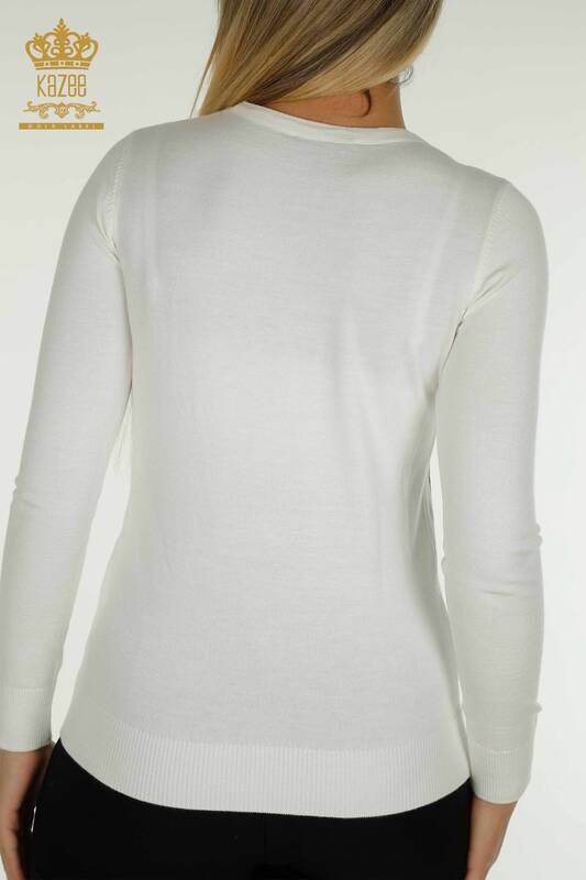 Wholesale Women's Knitwear Sweater Stone Embroidered Flower Patterned Ecru - 30471 | KAZEE