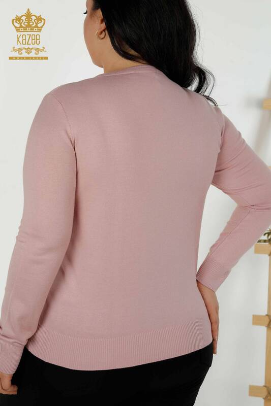 Wholesale Women's Knitwear Sweater Stone Embroidered Long Sleeve Powder - 16728 | KAZEE