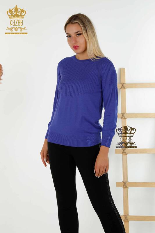 Wholesale Women's Knitwear Sweater Stone Embroidered Woven Violet - 30104 | KAZEE