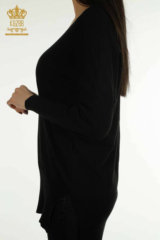 Wholesale Women's Knitwear Sweater with Slit Detail Basic Black - 30193 | KAZEE