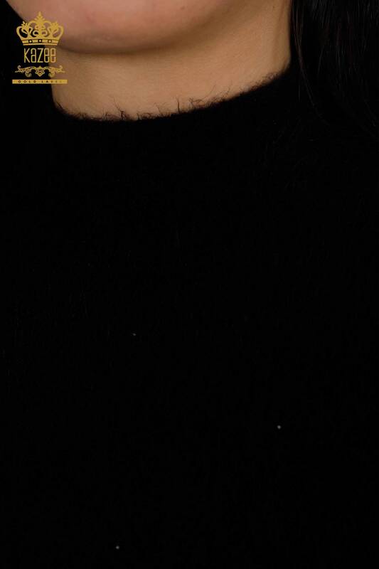 Wholesale Women's Knitwear Sweater Stone Embroidered Tiger Pattern Angora Black - 18955 | KAZEE