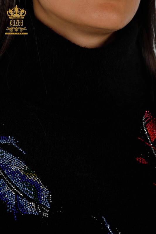 Wholesale Women's Knitwear Tunic Colored Feather Patterned Stone Embroidered - 18892 | KAZEE
