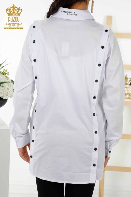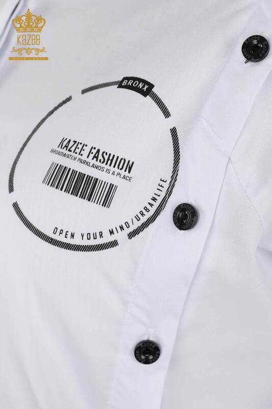Wholesale Women's Shirt Button Detailed Text Detailed White - 20328 | KAZEE