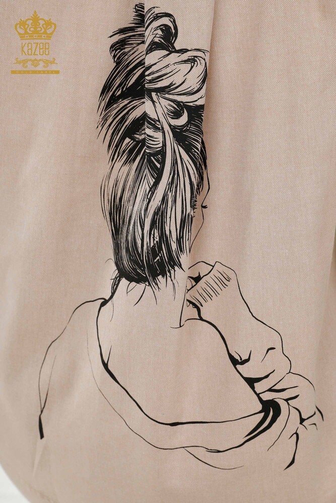 Wholesale Women's Shirt Suit Patterned Beige with Pocket - 20332 | KAZEE