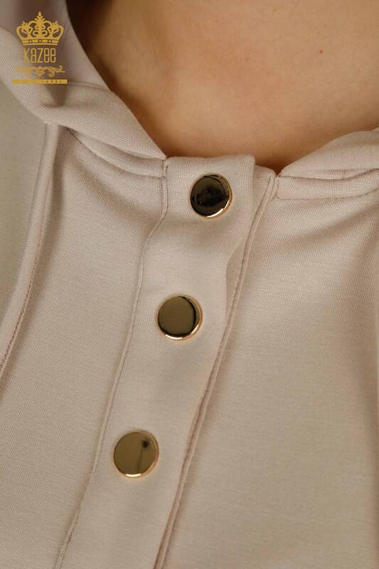 Wholesale Women's Shorts Tracksuit Set Hooded Button Detailed Mink - 17695 | KAZEE