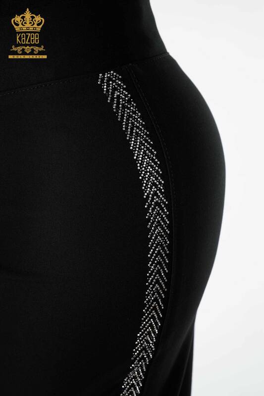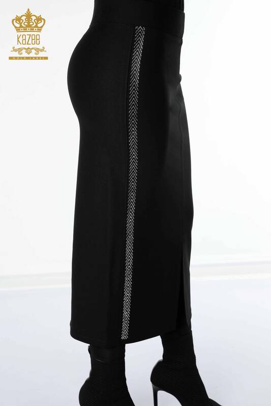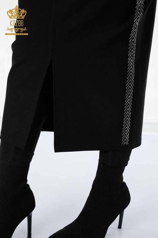 Wholesale Women's Skirt Long Stone Embroidered Slit Detailed Black - 4187 | KAZEE