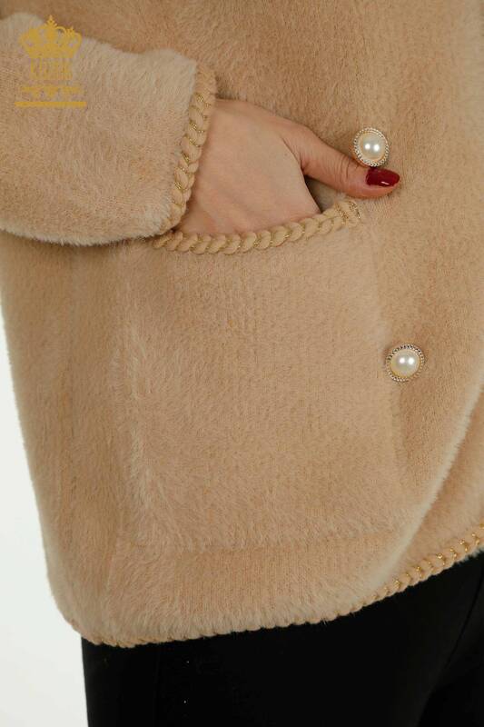 Wholesale Women's Angora Cardigan with Pocket Detail Buttons Beige - 30799 | KAZEE