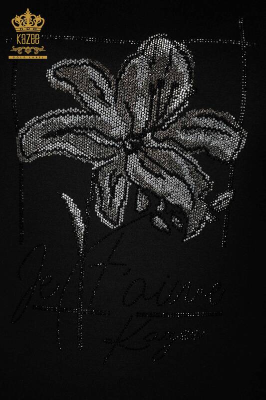 Wholesale Women's Blouse Floral Pattern Stone Embroidered Black - 79014 | KAZEE