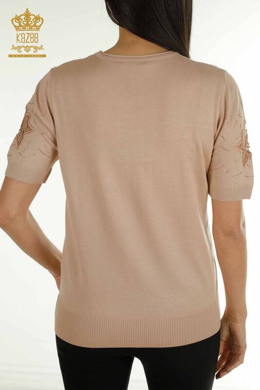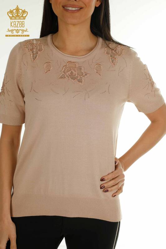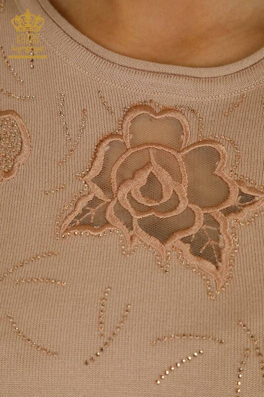 Wholesale Women's Knitwear Sweater American Model Stone Embroidered Tulle Detailed Powder - 31036 | KAZEE