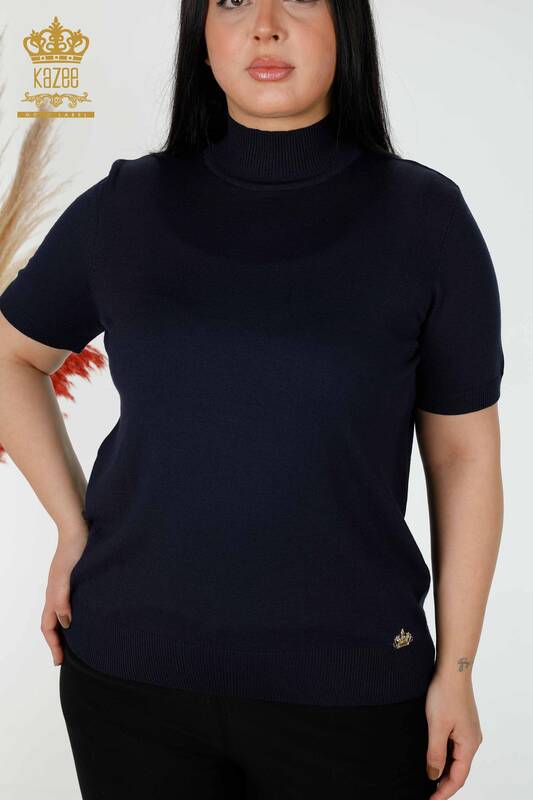 Wholesale Women's Knitwear Sweater American Model Standing Collar Viscose Navy - 16168 | KAZEE