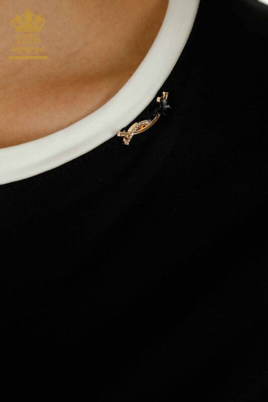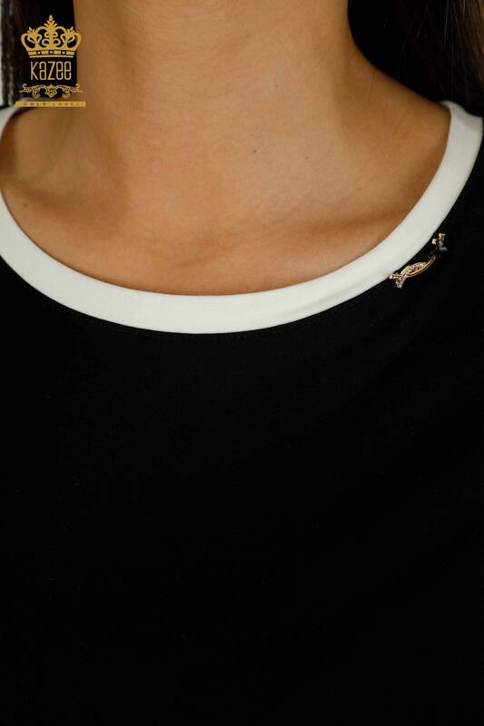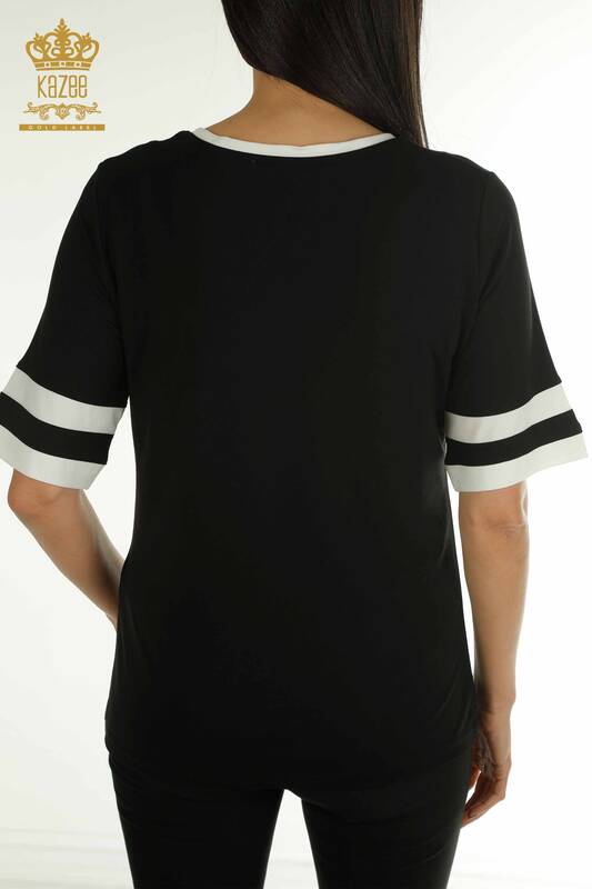 Wholesale Women's Blouse Sweater Striped American Model Black - 79536 | KAZEE