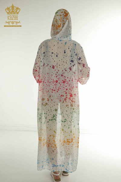 Wholesale Women's Pareo Colored Patterned Hooded Ecru - 7769 | KAZEE