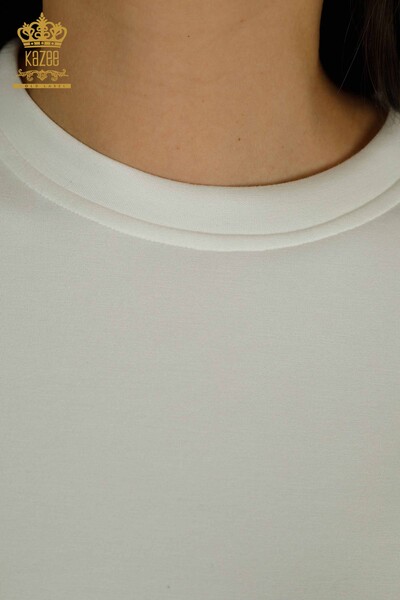 Wholesale Women's Tracksuit Set with Shorts Basic Pocket Short Sleeve Ecru - 17699 | KAZEE
