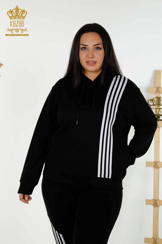 Wholesale Women's Tracksuit Set Hooded Striped Two Color Black White - 17569 | KAZEE